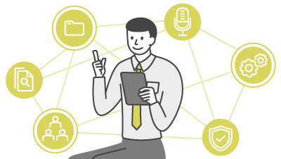 | データ管理 | 第三者監査が可能 通話参加者以外の第三者(コンプライアンス部門や管理者など)によるデータ一元管理が可能。 |